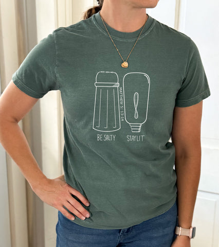 In a world full of darkness and ungodly ideologies that leave a bad taste in the mouth, we have an incredible opportunity to shine the light of Jesus’ love and use words seasoned with the Truth of the Gospel. We hope our “salty/lit” design can serve as both a reminder to stay the course and a conversation starter for curious minds.