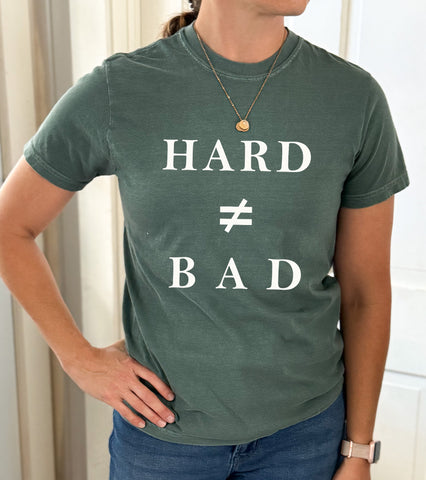 We love wearing truth to remind us of its importance on a daily basis. Graphic and bold, our Hard Does Not Equal Bad tee is fantastic for guys or girls and features a stylish 100% heavyweight cotton tee from Comfort Colors.